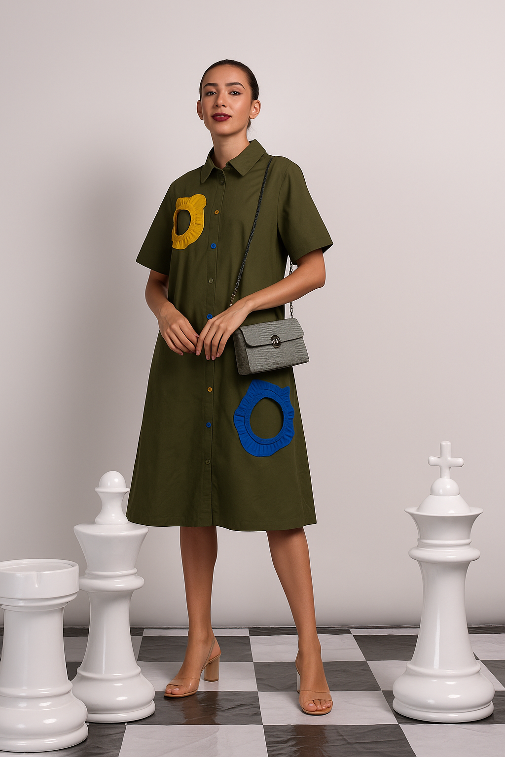 Cameron Cotton Laser Floral Shirt Dress - Green