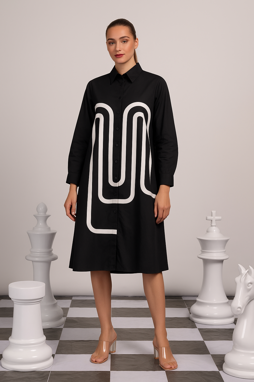 CAMERON PRINTED DRESS- BLACK & WHITE