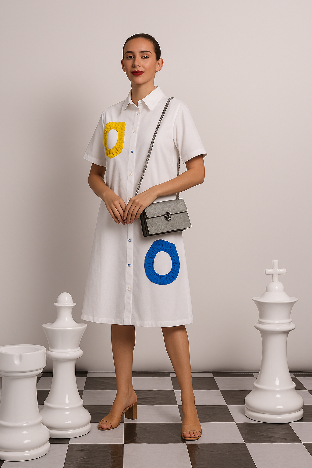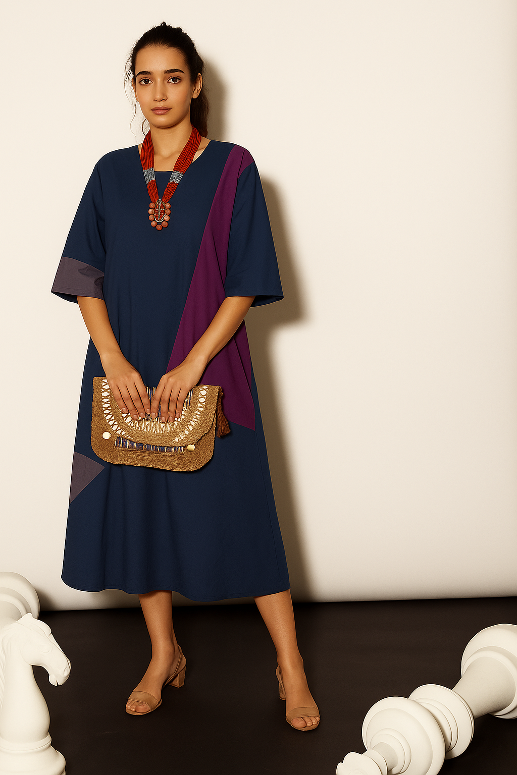 COTTON COLOUR BLOCK SHIRT DRESS - BLUE PURPLE