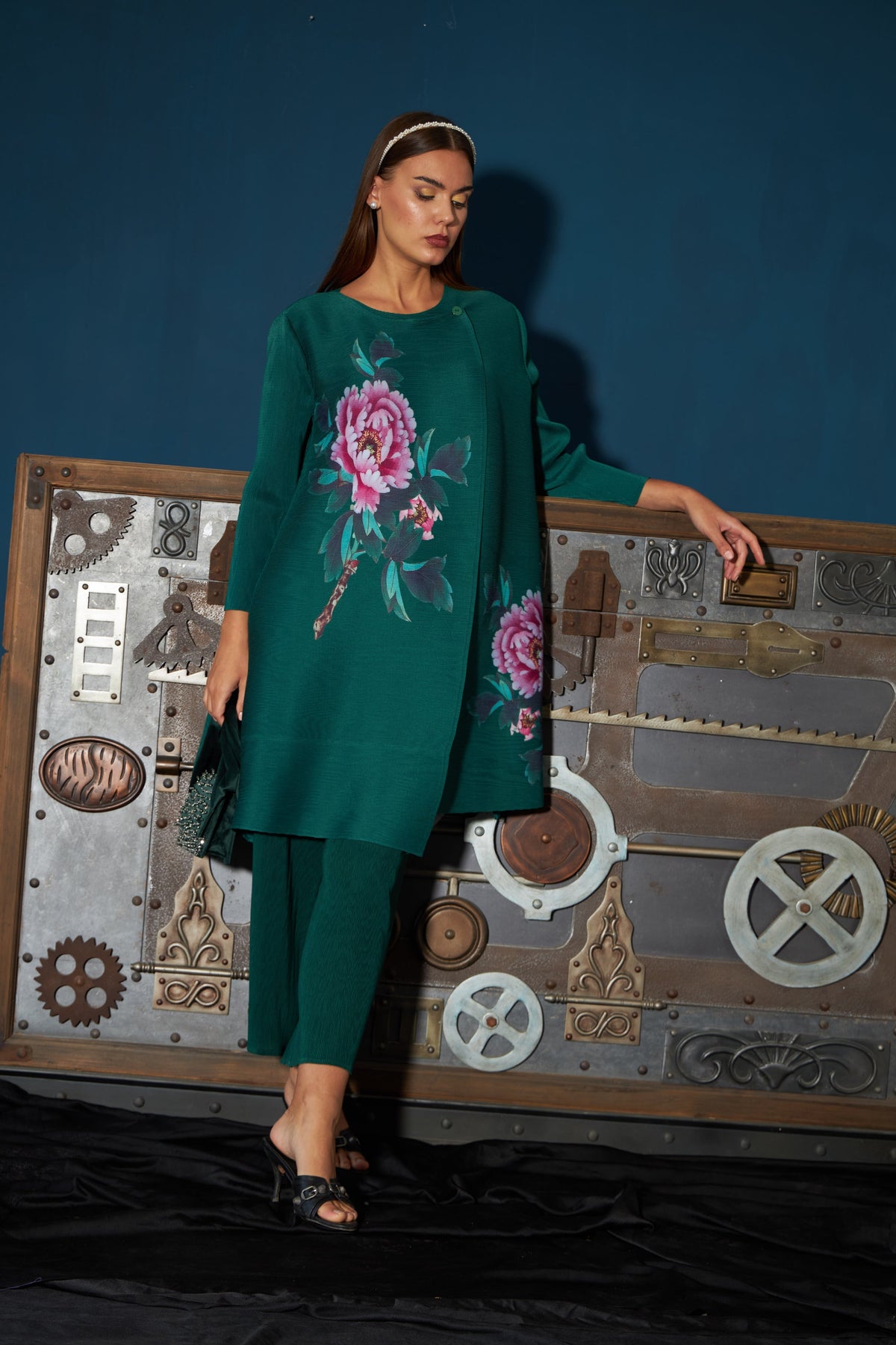Make a style statement in this stunning Fable Floral Tunic set in color Pink. A regular fit shirt tunic comes with round neck, one button angrakha closure on the left and full sleeves. Accented with the floral print on the tunic, this set is going to make your floral dreams come true.