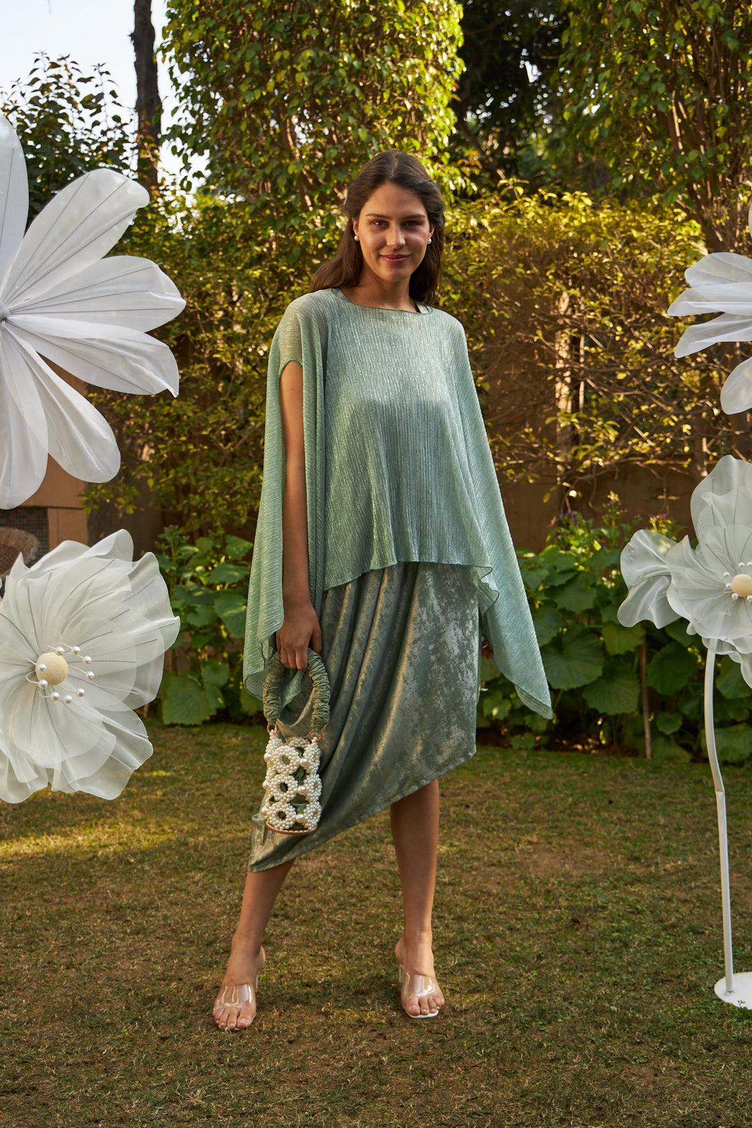 Slip Easy Dress With Shimmer Cape - Mint Green
