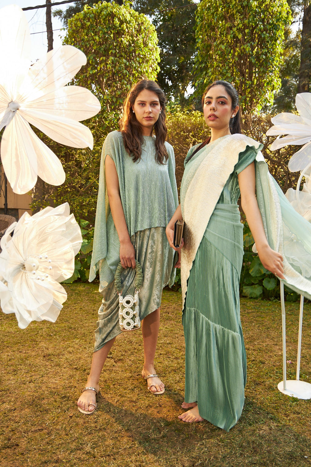 Slip Easy Dress with Organza Cape - Blush Green