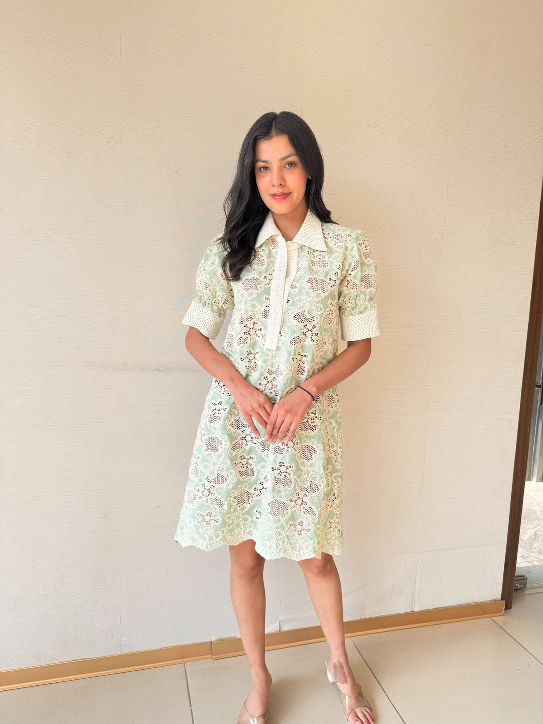 Myra Mesh Pearl Rowan Dress - Ivory Blue