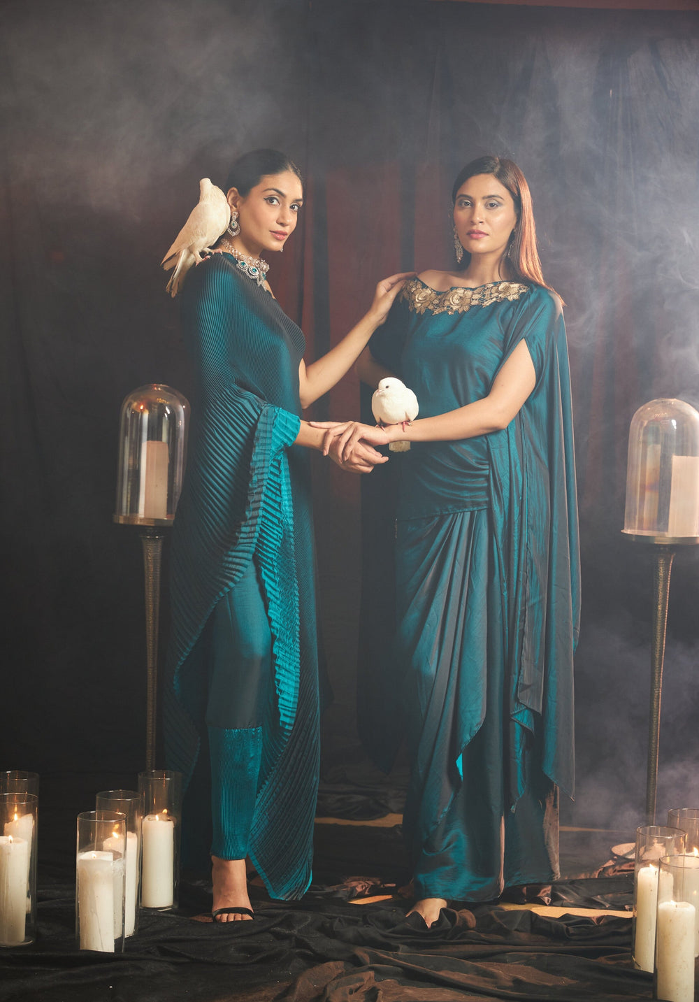 Avyah Divine Cape with Dhoti Skirt - Deep Teal