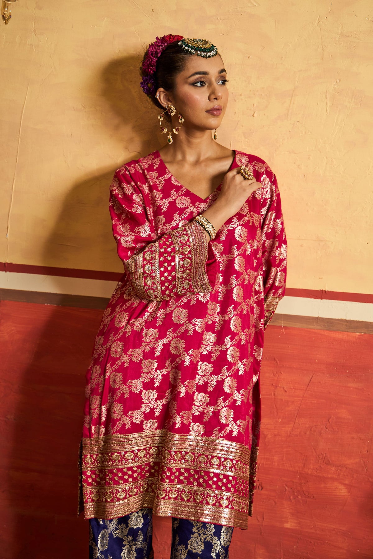 Banarasi Begum Tunic Set - Fuschia and Purple