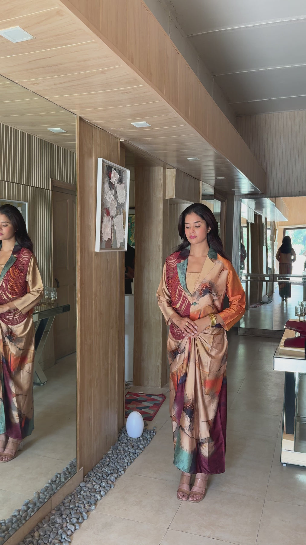 Elevate your style with the Kiri Patch Work Kaftan Top paired with Flared Pants. This stunning ensemble features a beautifully crafted kaftan adorned with intricate pearl work designs, exuding bohemian elegance. The flowing silhouette drapes gracefully, while the flared pants add a touch of retro charm. This set combines comfort with flair, making it a versatile addition to your wardrobe.