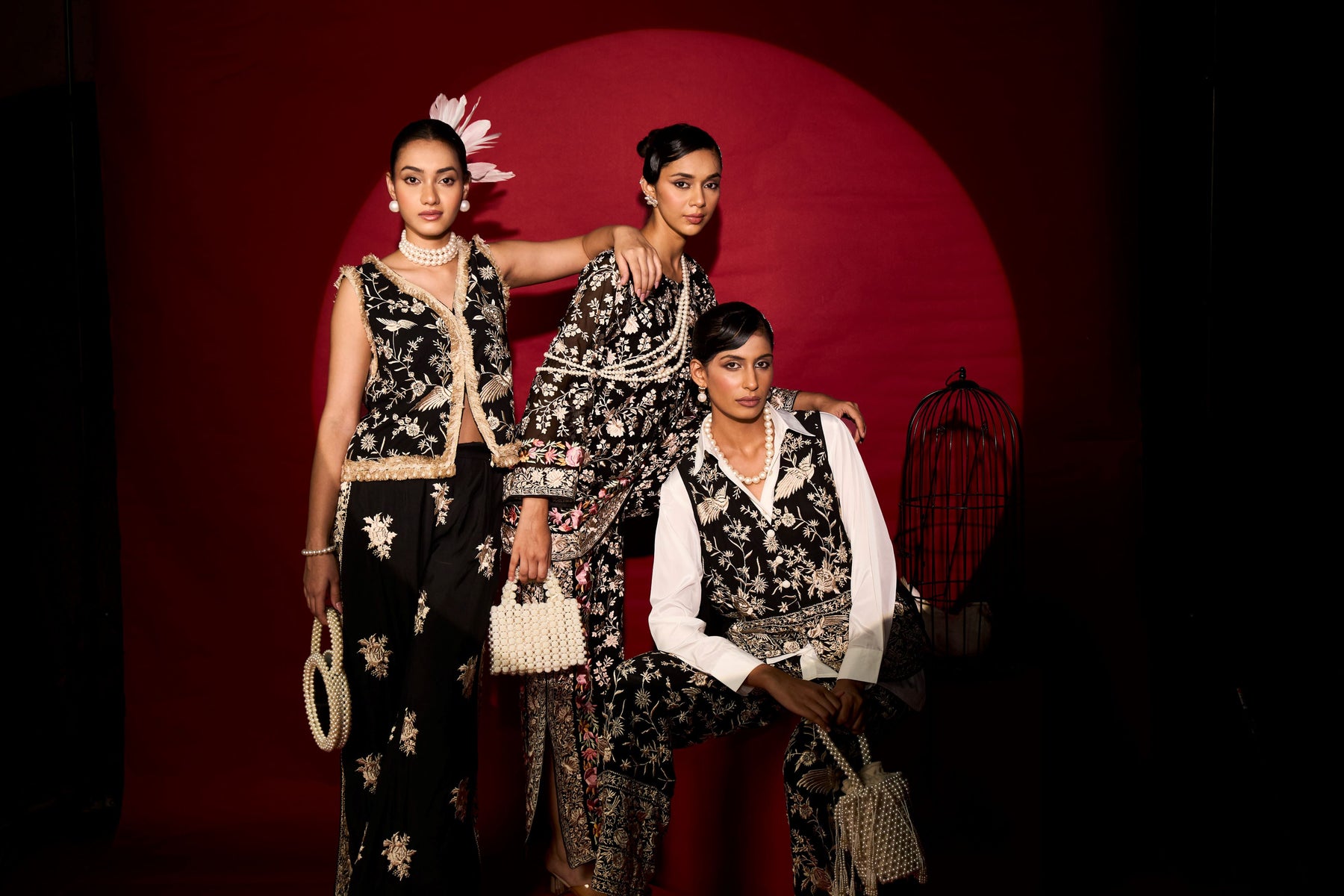 Reyna Gara Rose Dust Kurta with Slit Pant - Black