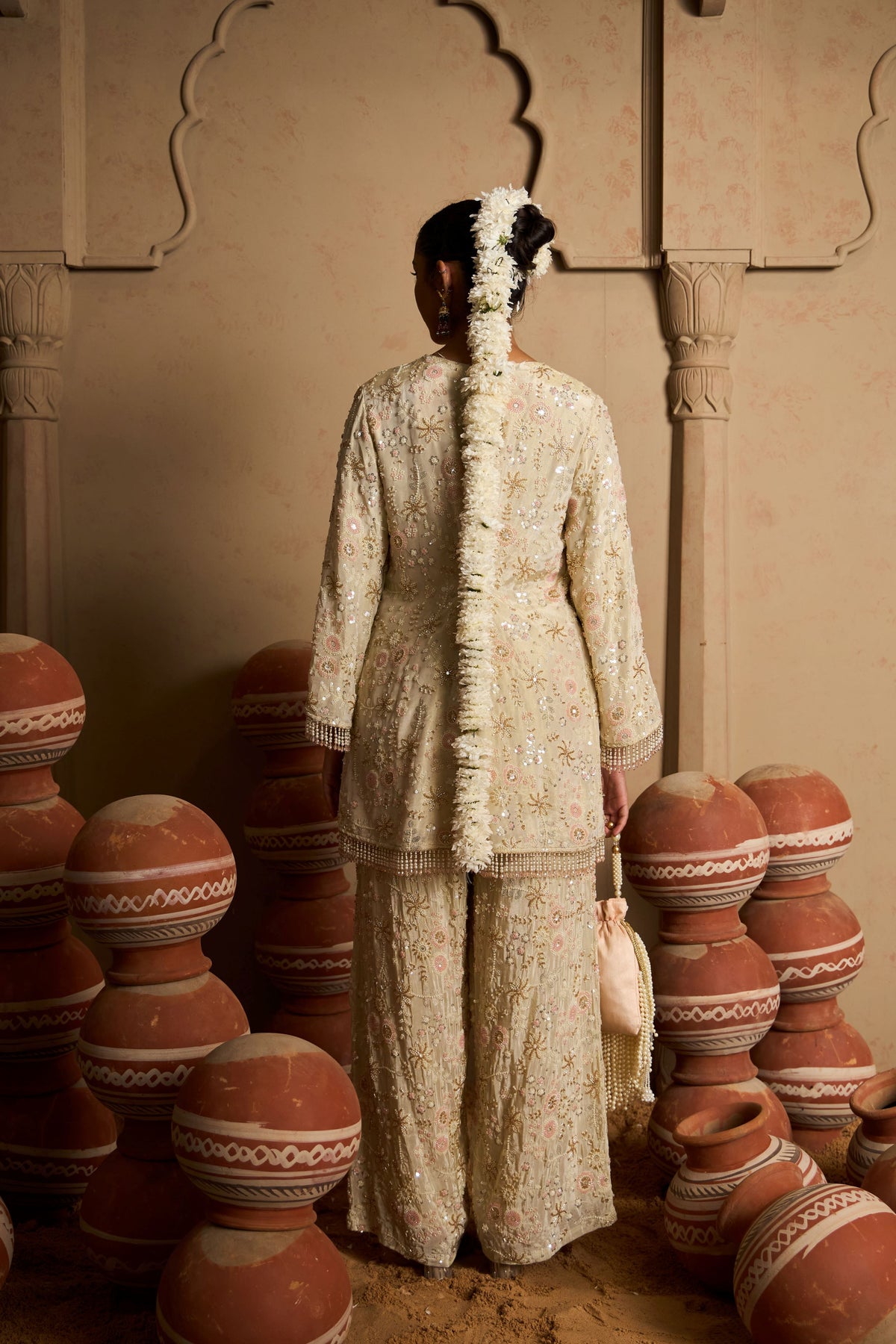 Inaayat Embroidered Tunic Set - Cream & Pink