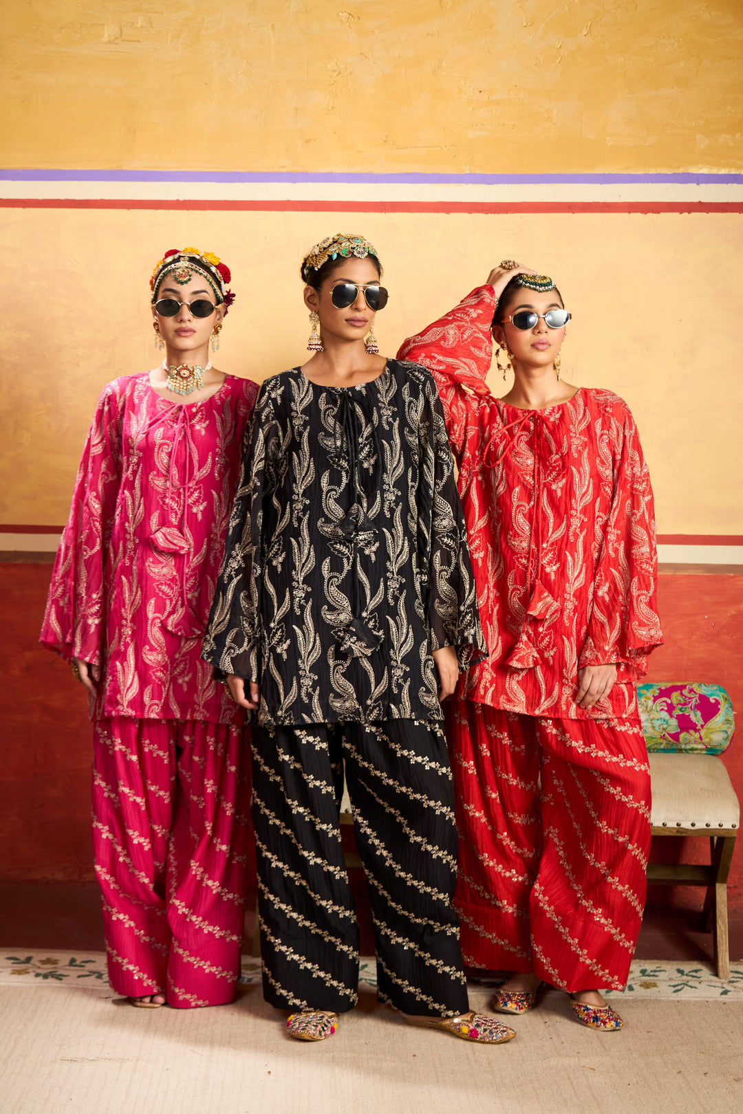 Reyna Gara Glazed Waist Coat With Coordinated Pants - Black