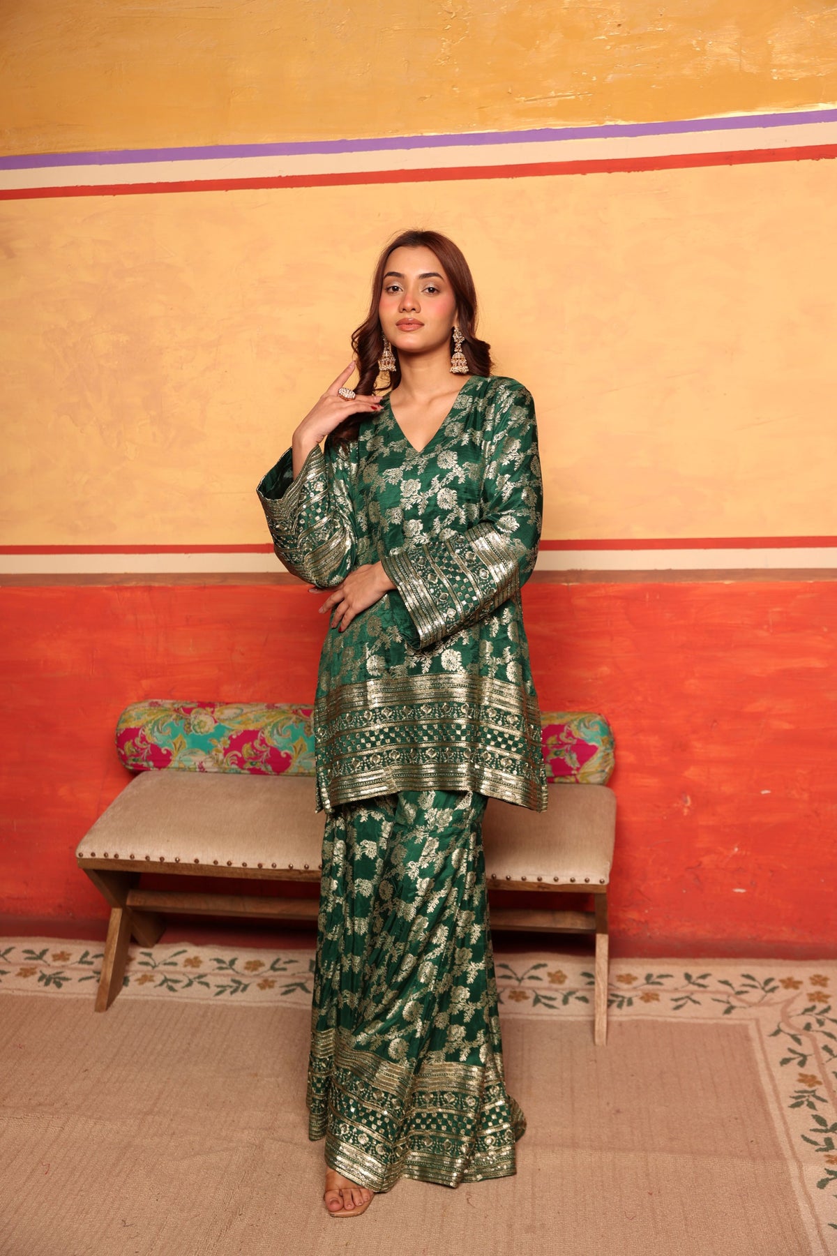 Banarasi Begum Sharara Set - Emerald Green