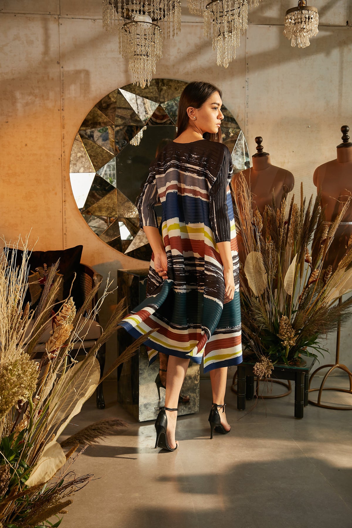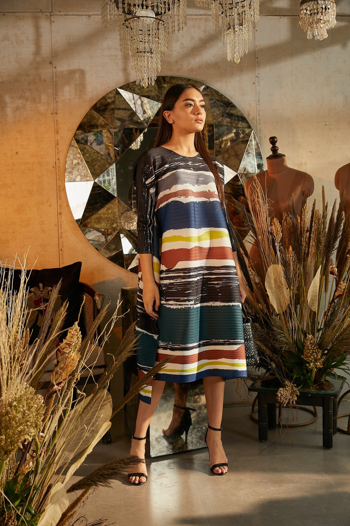 A fun colour palette and nautical stripes define the exquisite Efflorescence Stripe Dress. An easy-breezy silhouette and three quarter sleeves, this playful number is sure to make your day a whole lot brighter. Style this with tie up heels and stand out.